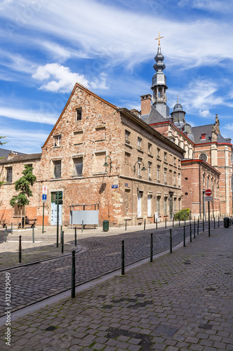 © Valery Rokhin, Obraz premium Brussels, Belgium. Riches Claires Street and Notre Dame aux Riches-Claires Church