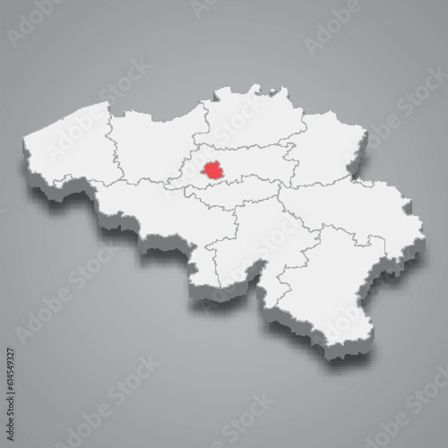 Fototapeta premium Brussels state location within Belgium 3d map