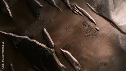 © Denflow, Fototapeta premium Brutal dark relief. Volumetric texture from different hard materials. Mysterious background.