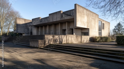 © Ibad, Obraz premium Brutalist concrete architecture with stark shadows