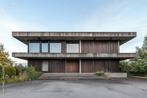 © JuanM, Fototapeta premium Brutalist concrete house with large glass windows