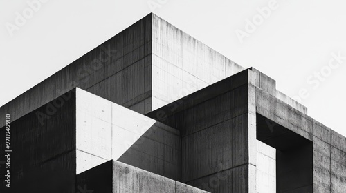 Fototapeta premium Brutalistic Symmetry: Modern Monochrome Art with Geometric Shapes and Raw...