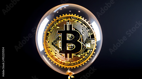 © Galeno, Fototapeta premium bubble burst text overlaid deflated bitcoin balloon