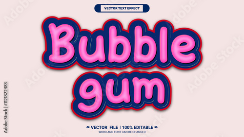 Obraz premium Bubble gum colourful bold trendy style editable 3d vector text effect
