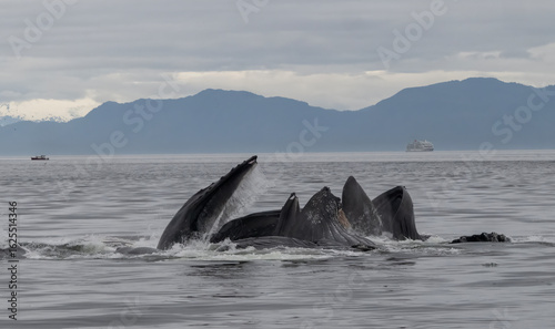 Fototapeta premium Bubble Net Feeding, Humpback Whales, Frederick Sound, Alaska