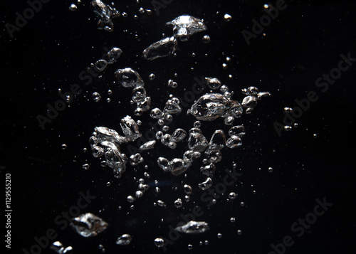 © Fedoruk, Fototapeta premium Bubbles and silver particles floating in dark water creating a mesmerizing effect