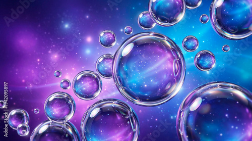 © Andres Mejia, Fototapeta premium Bubbles containing galaxies floating in a cosmic universe