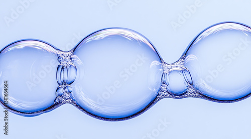 Fototapeta premium Bubbles float gracefully in the air against a serene blue background during a...