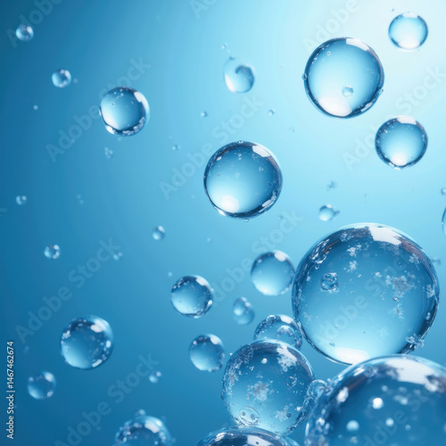 Obraz premium Bubbles floating in blue background create serene and refreshing atmosphere,...