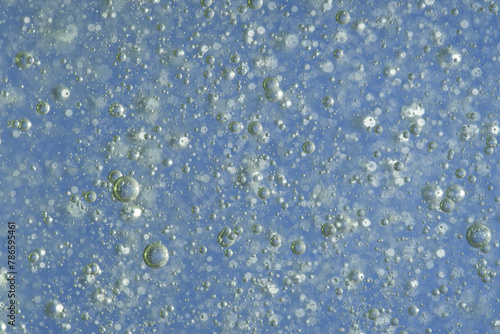 Fototapeta premium Bubbles in the water on a blue background. Closeup.