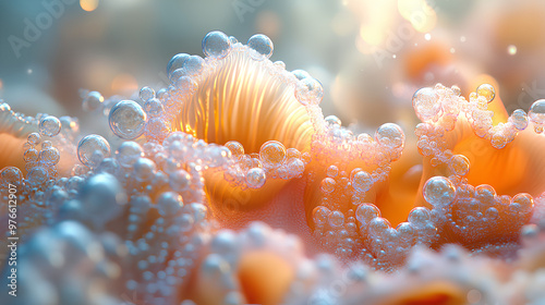 © Priyanut, Naklejka premium Bubbles merging to create intricate designs, organic shapes, whimsical and detailed