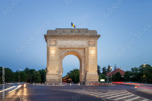 © tichr, Fototapeta premium Bucharest, The Triumphal Arch (Arcul de Triumf) at dusk