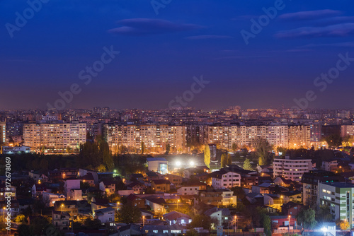Naklejka premium Bucharest view from above at sunset