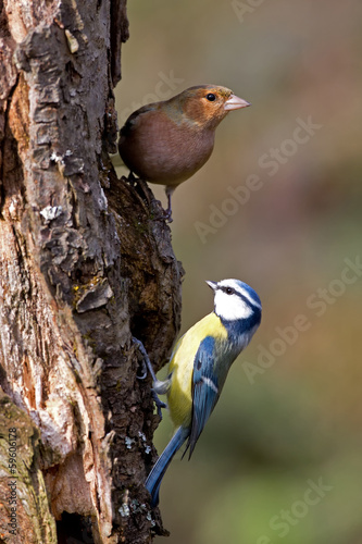 © hfox, Fototapeta premium Buchfink und Blaumeise