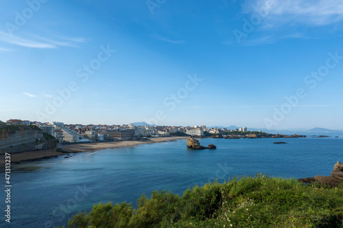 Fototapeta premium Bucht von Biarritz, links Grande Plage, Region Nouvelle Aquitaine, Les Landes, Frankreich