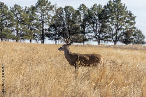 Naklejka premium Buck Whitetail deer in Colorado During the Rut in Autumn