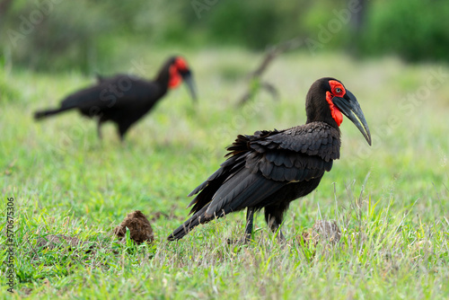 Fototapeta premium Bucorve du Sud, Grand calao terrestre, Bucorvus leadbeateri, Southern Ground...