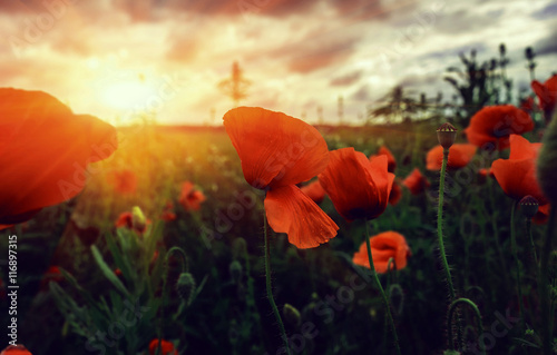 © Lumppini, Fototapeta premium bud wild poppy flower at sunset