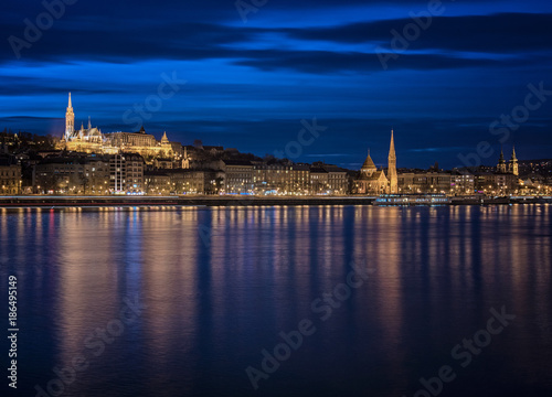 Naklejka premium Budapest and the Fishermen's Bastion at night