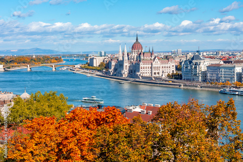 Obraz premium Budapest autumn cityscape with Hungarian parliament building and Danube...