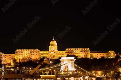 Fototapeta premium Budapest by night. Buda Castle and Szechenyi Chain Bridge.
