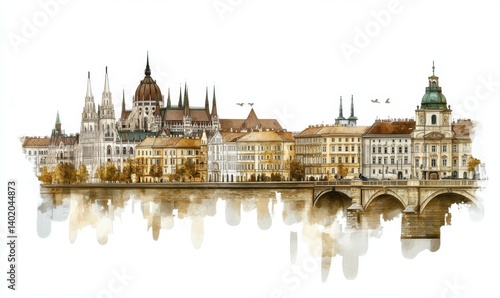 Fototapeta premium Budapest cityscape, autumn river reflection, Parliament building, travel postcard