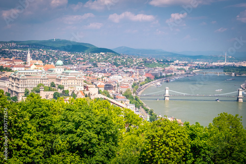 © Alexey Oblov, Obraz premium Budapest cityscape with Hungarian parliament building and Danube river, Hungary