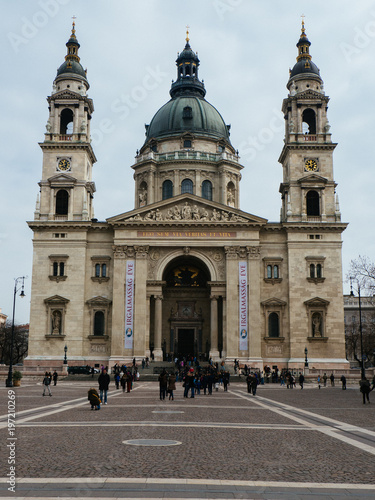 © George, Fototapeta premium Budapest,Hunary -March 20 ,2016.Front view of Historische Kirche, St.-Stephans-Basilika in Budapest,