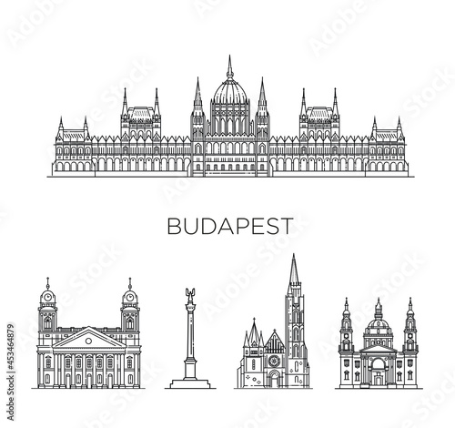 Fototapeta premium Budapest, Hungary, architecture line skyline illustration. famous landmarks
