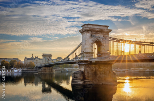 Fototapeta premium Budapest, Hungary - Beautiful sunrise at Szechenyi Chain Bridge