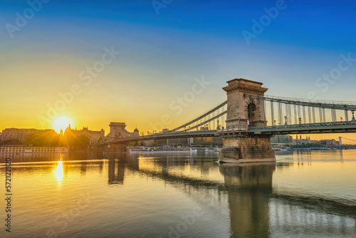 Fototapeta premium Budapest Hungary, city skyline sunrise at Danube River with Chain Bridge and...