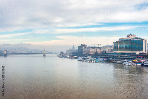 Fototapeta premium BUDAPEST, HUNGARY - January 16,2018: view of historic architectural in Budapest from Danube