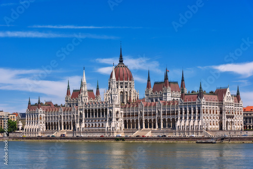 Fototapeta premium Budapest, Hungary - July 04, 2022: View of Hungarian Parliament Building,...