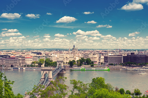 Fototapeta premium BUDAPEST, HUNGARY- JUNE 05, 2017: City landscape with Szechenyi Chain Bridge