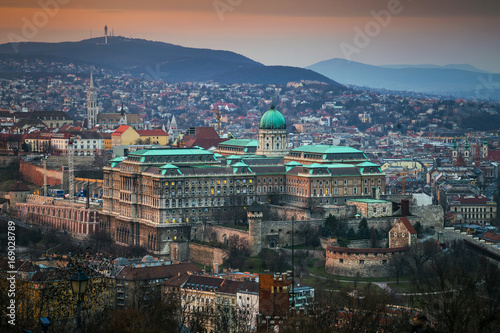 © zgphotography, Fototapeta premium Budapest, Hungary - The beautiful Buda Castle at sunset with the Buda Hills at background
