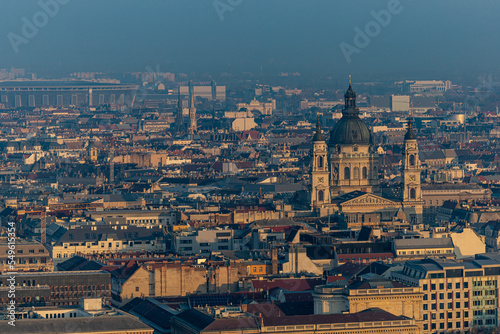 © Alexander, Fototapeta premium Budapest, Hungary The city view from the Matthias Church, or .Mátyás Templom, towards the St. Stephen's Basilica or.Szent István Bazilika