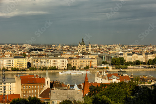 Obraz premium Budapest Hungary. View of the capital in Europe. Cruises ship passes on the...
