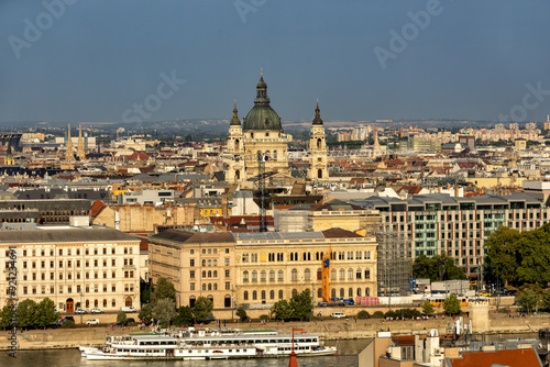 Obraz premium Budapest Hungary. View of the capital in Europe. Cruises ship passes on the...