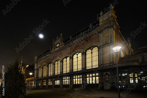 Fototapeta premium Budapest Nyugati Railway Terminal at night, Hungary