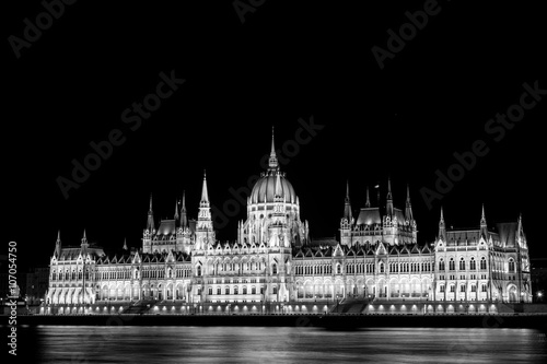 Fototapeta premium Budapest Parliament building illuminated black&white