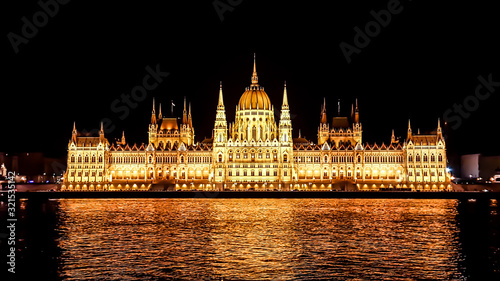 Fototapeta premium Budapest Parliament in Hungary at night. View form the Danube river.