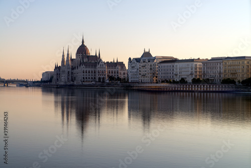 Fototapeta premium Budapest parliament on the Danube banks at dusk, Hungary