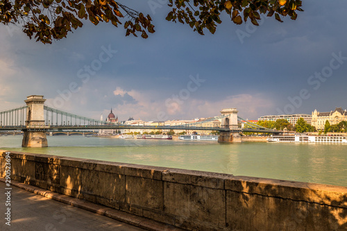 Fototapeta premium Budapest, view of the Chain Bridge from a promenade at the river Danube, Hungary, Europe.