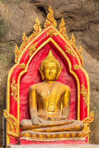 Fototapeta premium Buddha in the cave , deep to the cave in Thailand