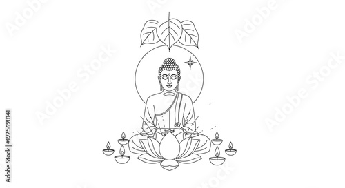 © Posh Pallete, Obraz premium Buddha meditation illustration with lotus flower and candles