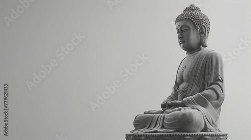 © Nastya, Fototapeta premium Buddha statue on gray background, copy space