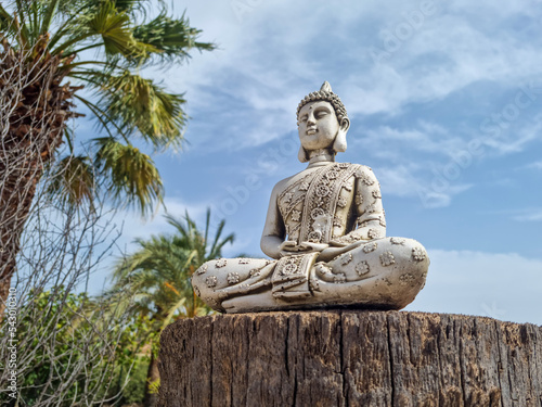© Bela Art, Fototapeta premium Buddha statue on tree trunk in nature