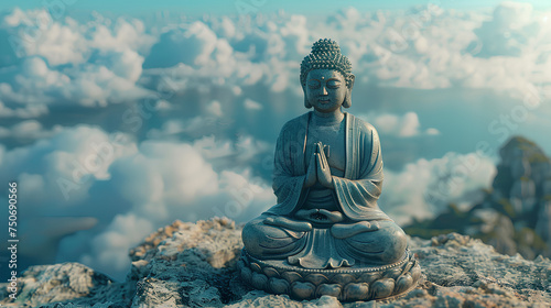 Fototapeta premium Buddha statue praying above the clouds with a clear sky
