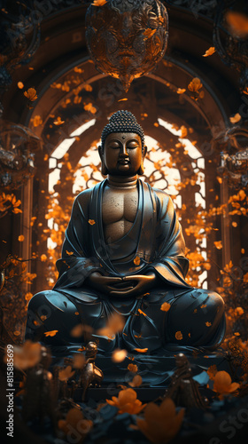 Fototapeta premium Buddha Statue Sitting Among Flowers