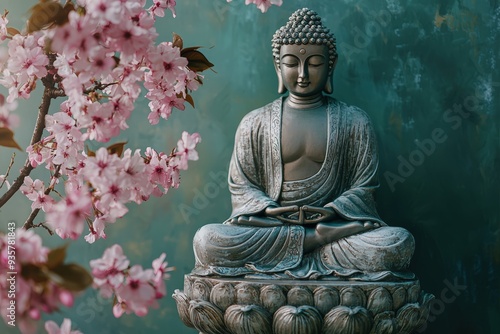 Fototapeta premium Buddha statue with cherry blossom